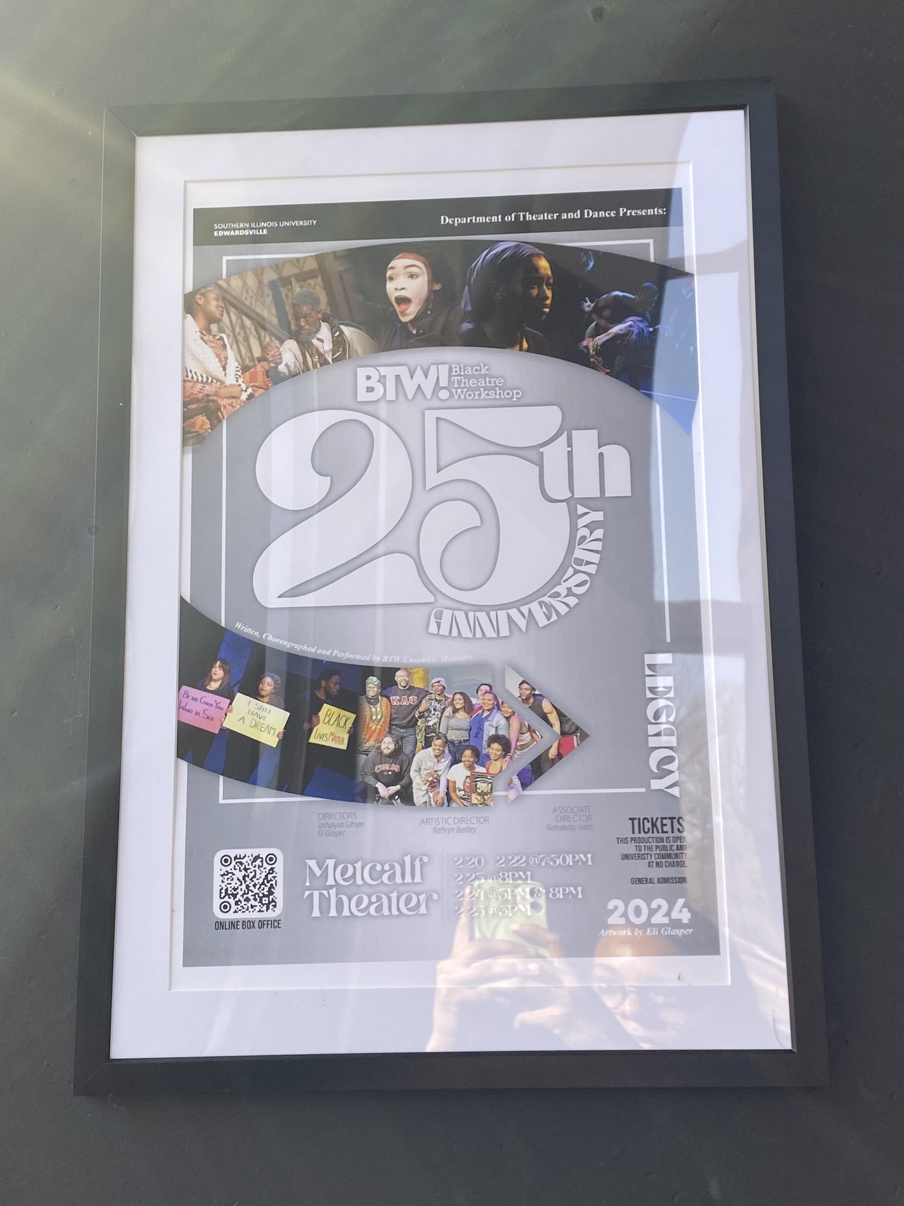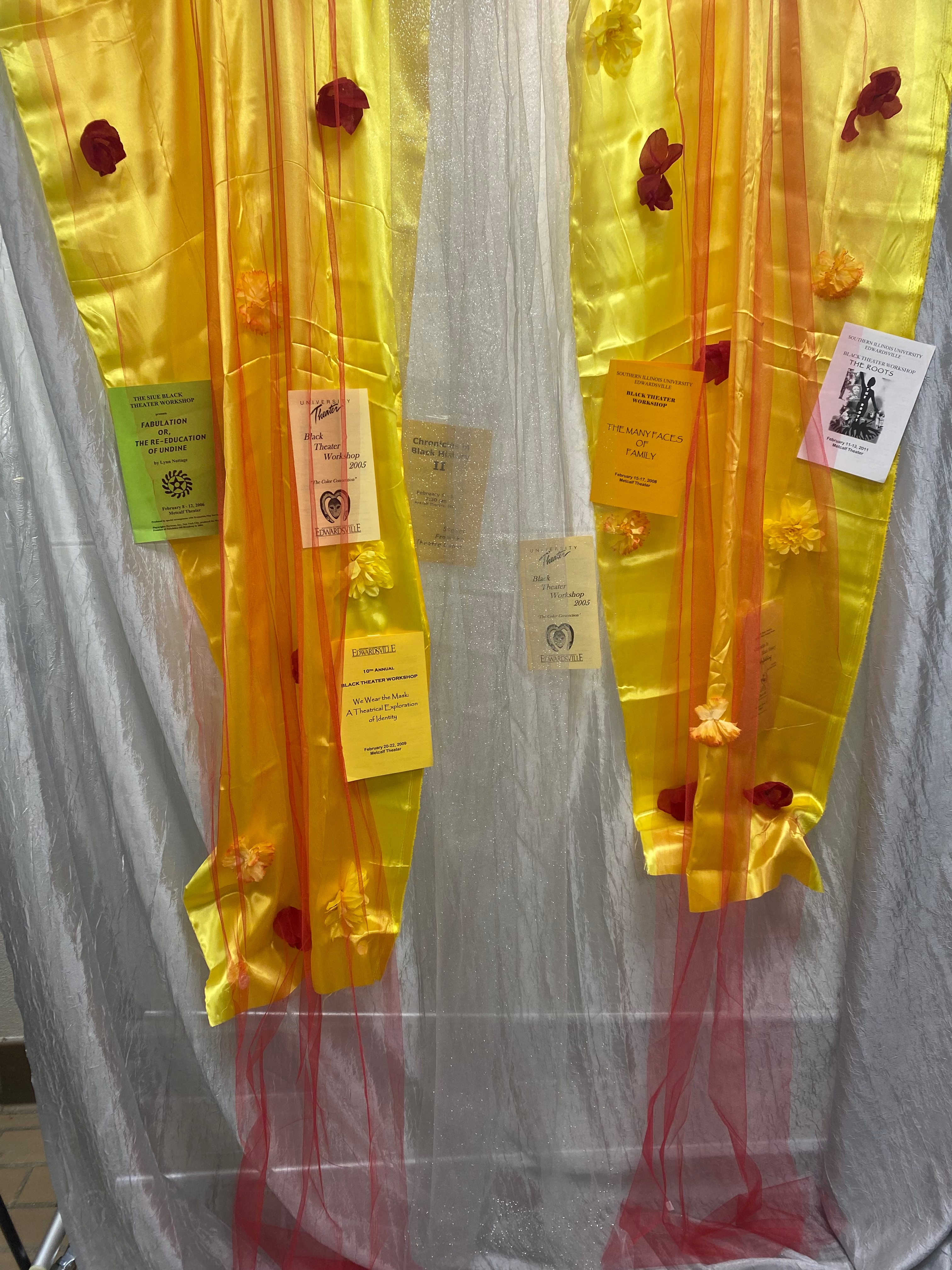 Pamphlets from previous Black Theatre Workshops decorate the entrance of the Metcalf Theatre in honor of the legacy performances.